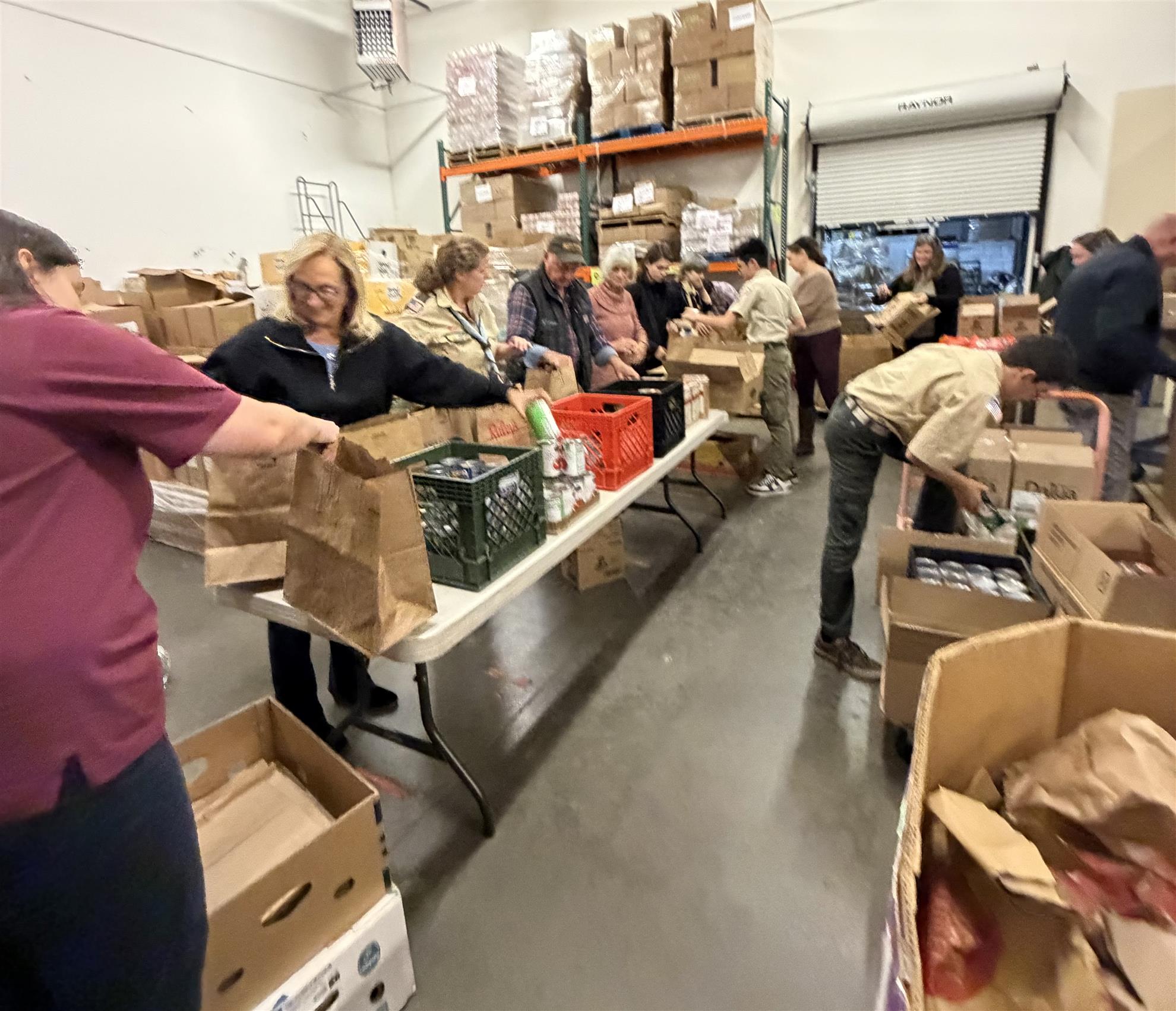 The week before, we pack 100+ bags of dry goods for the Thursday distribution. The local Boy Scouts help out, too!
