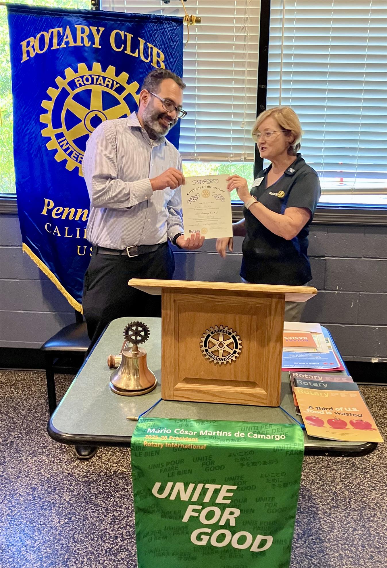 Welcome New Members 2025-26 Janet Wheeling, Vineyard Owner Bridget Grant (far left), Event Coordinator Linda Lee, Author and Photographer Eric Martin, Chief Correspondent & Writer, Shipping Industry Patrick Eagle, Principal, Ready Springs School