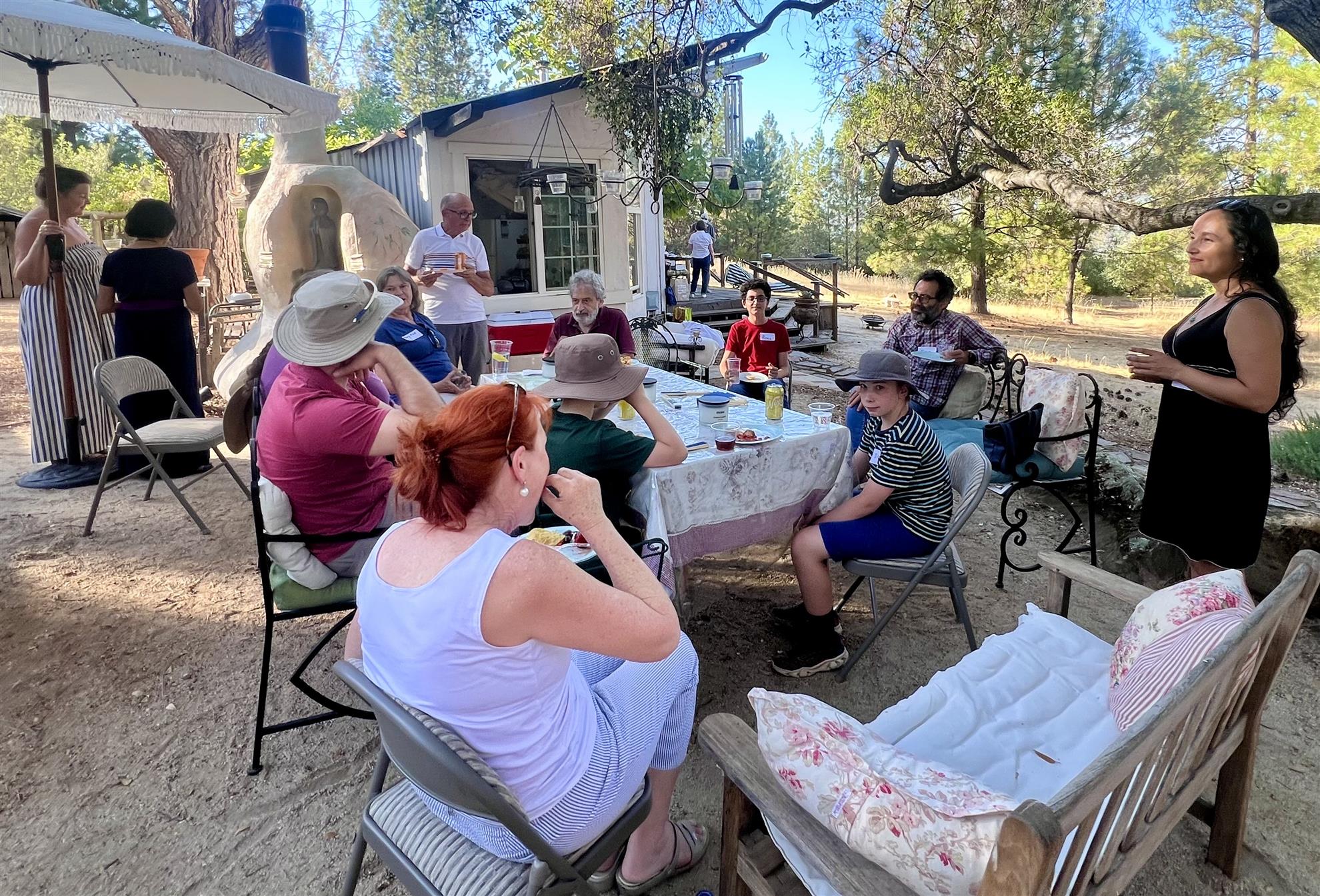 MEETING TIMES....1st and 3rd Tuesdays of the month, noon, Players Restaurant and Sports Bar, Penn Valley... August 19 meeting... Lola and the short Term Exchange student...Short Term Exchange or STE is a relatively new program here in District 5190. It's a Family to Family exchange for a short period, usually a few weeks, during the summer...We'll hear about the exchange when Lola (our student) comes to visit with her STE student from Germany...Plus we'll be inducting new members... Sept 2...Linda Lee, prospective new member, discusses her new book REFLECTIONS recounting her travels abroad through poetry...such a great inspiration... Sept 16...John Paul from the 49er Breakfast Club, will share his journey into Improv as a retirement exploration in a talk called "Reimagine Retirement".. learn why he chose this adventure for his retirement journey ***************************************************************** Mark your calendars.... Next Hospitality House cooking - August 27 Penn Valley Rotary club social A good time was had by all at the Rotary wine & appetizer social on Friday. Carrie L’esperance, a friend and neighbor to Darleen and Bruce Golder, graciously opened her unique Permaculture home to us. The home sits on 20 rustic acres, which includes the Yellowood Nature Reserve in Penn Valley. Permaculture follows the principles of sustainability, ecological design, and harmony with nature. Get ready for Pups for Polio...Make sure you are working on your task so we can get this off to a raging start...the Western Gateway Dog Park folks have secured food vendors and other service dog groups to participate...let's make sure this produces lots of donations to Polio Plus ***************************************************************************** Possible community Project.. We had a recent meeting with folks from the Chamber, Lions, Rotary and previous volunteers from the food bank distribution...Brett Bentley, the new ED from the Nevada County Food Bank, gave us a overview of the need to make sure this distribution in Penn Valley continues. We'll have another meeting in a few weeks to get organized to start up in October again... We have been asked to pick up snack foods from the Nevada County Food Bank for Ready Springs and Williams Ranch schools each Friday...if you would like to help with this, contact Lindy during a meeting... Our MAILING ADDRESS!!! ...11354 Pleasant Valley Road, #134, Penn Valley, CA 95946
