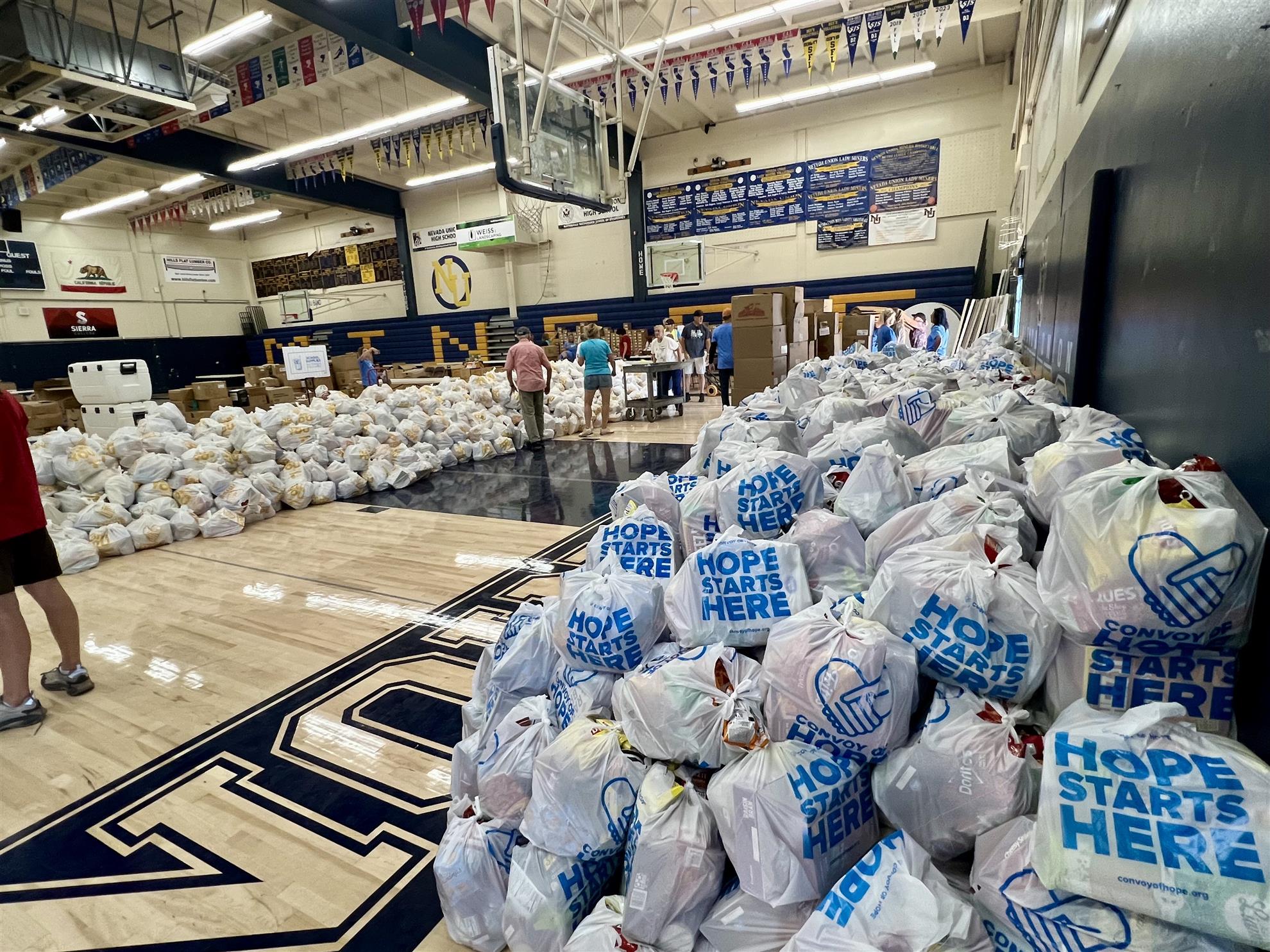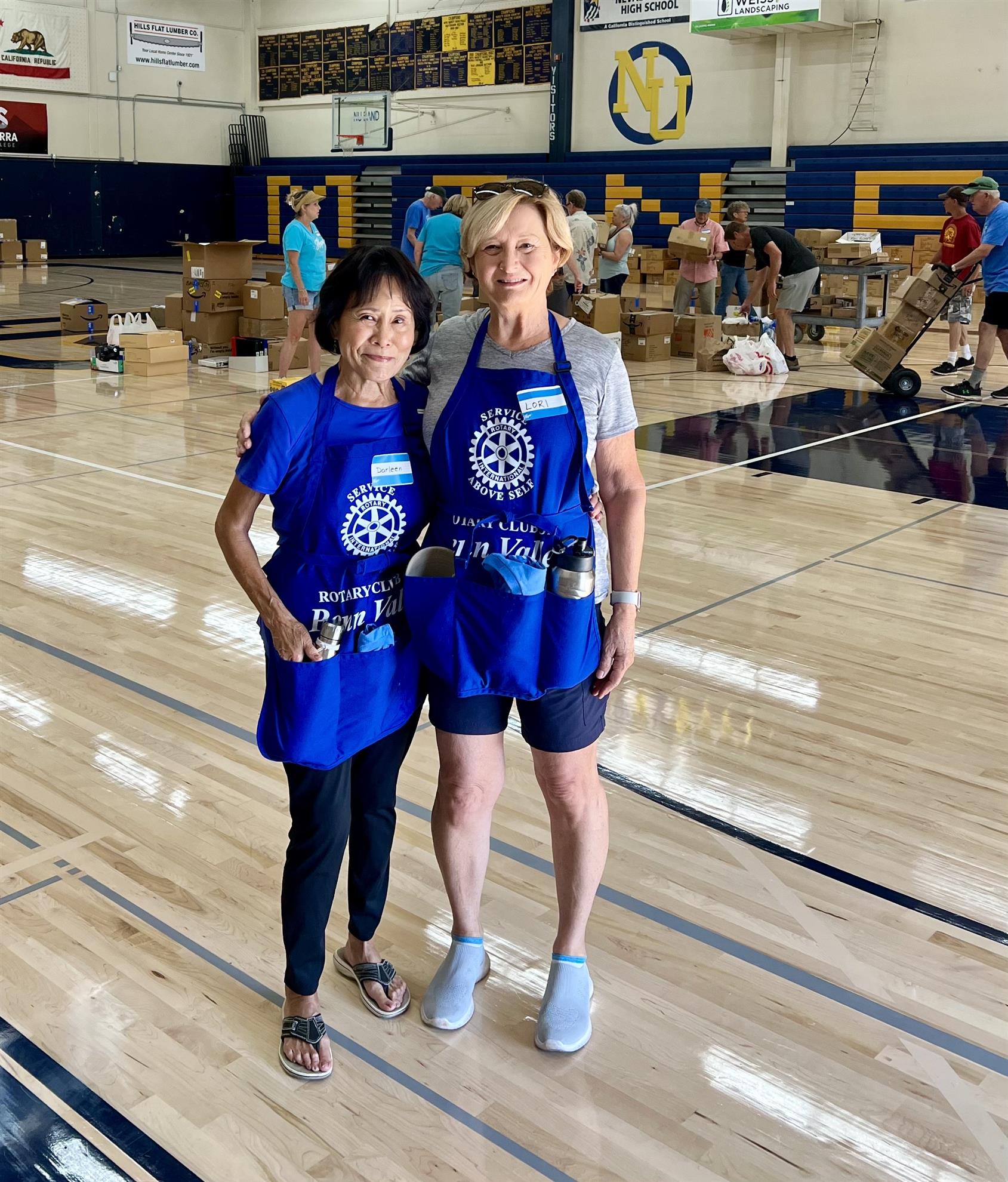 MEETING TIMES....1st and 3rd Tuesdays of the month, noon, Players Restaurant and Sports Bar, Penn Valley... August 5 meeting ... a visit from our District Governor, Larry Harvey...we will also be inducting a new member... August 19 meeting... Lola and the short Term Exchange student...Short Term Exchange or STE is a relatively new program here in District 5190. It's a Family to Family exchange for a short period, usually a few weeks, during the summer...We'll hear about the exchange when Lola (our student) comes to visit with her STE student from Germany... ***************************************************************** Mark your calendars.... Next Hospitality House cooking - August 27 WOW point collections at Holiday Market/Penn Valley Gift cards that our club receives from the donation of WOW points when folks shop at Holiday Markets, go towards purchasing food for the Thrive Store at Ready Springs school and to the Holiday Baskets we provide for families in our community during the Holiday season... Joyce Feldman has scheduled August 9 for 4 hours for WOW point collection tabling...hours flexible if the day is hotter...info on how the program works are available and it's a great way to connect with the community about our Rotary club...please connect with Joyce Feldman - joyce@twinvalleyins.com to sign up or at the next Rotary meeting... At the last meeting, Prez Lori asked each member to sign up for a task at the October event...please connect with Lori or come to the next meeting to get info on this club wide event...it's a all hands on deck to help raise funds for Polio Plus and the Western Gateway Dog Park... ***************************************************************************** Unite for Good.. Last weekend, Darleen and Lori volunteered alongside 200 other volunteers from nonprofits and churches for "Hope for Nevada County" to pack bags of groceries. Distribution of backpacks, school supplies, shoes, socks and free haircuts were held on Saturday at Nevada Union High school. What a great way for the community to come together... ************************************************ Our MAILING ADDRESS!!! ...11354 Pleasant Valley Road, #134, Penn Valley, CA 95946